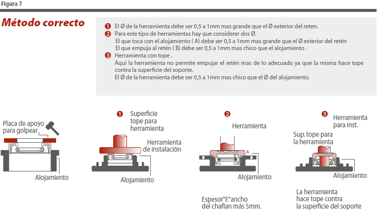 El uso de herramientas evitan daños sobre el retén (deformaciones), sobre los alojamiento y además impiden la instalación desalineada de las piezas.